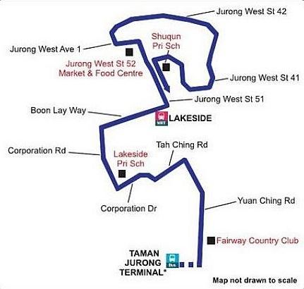 Firstly, the bus started off from Taman Jurong bus terminal. Then it plies around Taman Jurong which is like a 154-246-98 hybrid route. Then it passes by Lakeside station then moves to st 51, 42 and then 41 which is a 334-335 hybrid route.