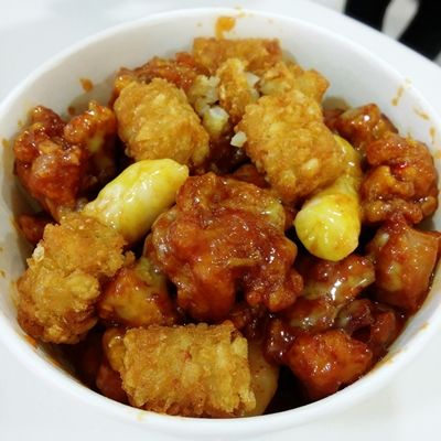 *Aiyo, if you really don't like the ricey stuff, then don't order tteokbokki in first place la!* Then towards the end, the aunty made another request to have more chicken meat instead of the rice cakes. Aigoo...