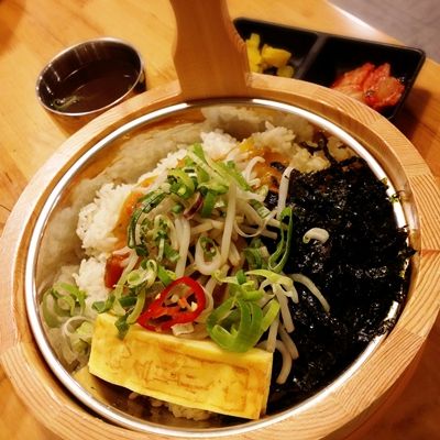 We picked Chef's Noodles (FB link) as the dinner venue as recommended by PG. It's a Korean restaurant, tiagong is opened by true Korean ds. Should be nice ba since I also loved to eat noodles. Ordered something which is non-beef one - Jeayook Bibim Guksoo or Spicy Sautéed Pork Dried Noodles ($12.90++) and a cup of Korean tea ($2.50++) to go along with my noodles.