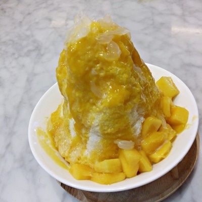 cafe. Ordered Pumpkin Yam Paste ($2.50), Iced Mango ($3.80) and Bobo
