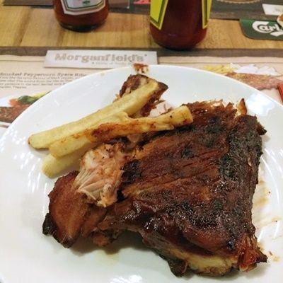 Reached Morganfield's at 8 pm. PG, HH and Agnes already finished their dinner liao, they left me a portion of the Garlic BBQ Spare Ribs ($39.90++) and 1 Bacon Wrapped Meatballs ($9.90++). As PG had a voucher to use, the dinner was free! So we only need to pay for the meatballs.