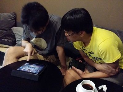 Took out iPad and let WX play SGS to help me up level. Keke. ... But he anyhow play one! 不要害我好不好?!