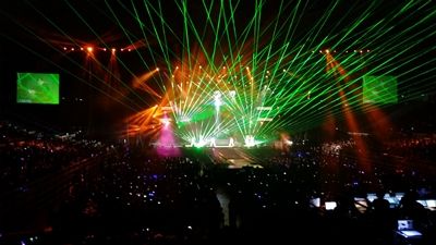 演唱會進行期間,看到很多工作人員站崗在最貴也是最接近偶像的觀眾座席,原因是有些人會偷帶DSLR單眼相機進場攝影。結果被我看到有人被工作人員請出去場外,取出相機才能再次入場。但他們不能禁止現在主流的有相機功能的手機,所以大家都是用手機拼命拍。我呢,我要喊,卻聽不到自己的聲音,因為聲響很大聲,這也就是演唱會該有的特色。在音樂渲染整個室內體育場之下,聽林俊傑唱歌感覺真的不錯。