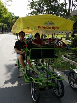 Of course took a ride in the family bike. It ain't cheap! $67.50 for a 1.5-hour ride but could sit in 6 adults without many squeezing proble. 他們很厲害做生意咧!The max speed was probably just walking speed!!! So that meant couldn't go as far as Bedok Jetty. The most we could go was from BBQ pit no. 45 to the hawker centre.