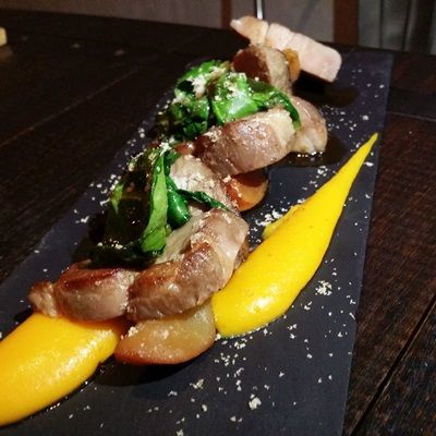 - Pork Neck, Roasted Chestnuts, Sweet potato & Caramelized Pears ($24++)