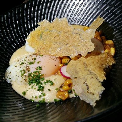 - Slow Cooked Egg, Maple & Sweet Corn ($14++)